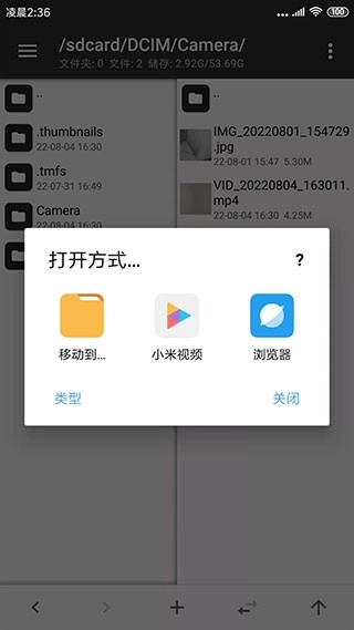 要是你平时习惯用某一个视频播放器,不想每次打开文件前都得选一遍,那可以长按这个打开方式,把它设为默认选项。这样下次再打开mp4文件时,就能直接播放视频了。