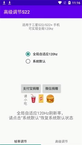 3. 选中全局120hz,进入地图、视频这类会反复刷新内容的场景,检查是否能达到满帧。