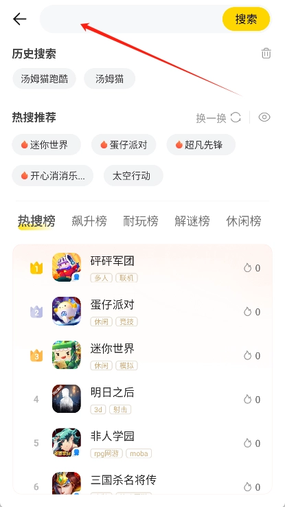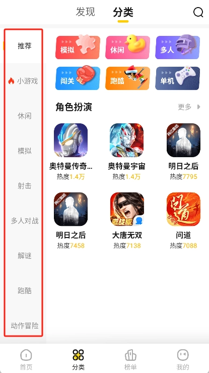 进入软件后,既可以选择对应的分类来浏览内容,也能借助搜索框直接查找游戏名称。