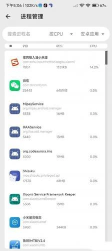 2、选择左上角的功能,有个进程管理,点进去即可查看后台情况。如图