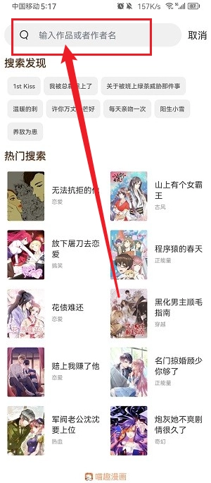 打开喵趣漫画,进入主页后,按照顶部的栏目分类来挑选漫画。