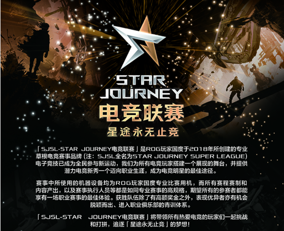 你是否也有过被父母唠叨打游戏不务正业的困扰?或是被人取笑成天打游戏简直宅到爆?现在,证明你自己的机会来了!ROG玩家国度专为所有电竞玩家举办的专业草根赛事SJSL-STAR JOURNEY电竞联赛 (STAR JOURNEY SUPER LEAGUE,简称:SJSL),目前報名非常踴躍、名額有限,即將於11/11截止報名了。