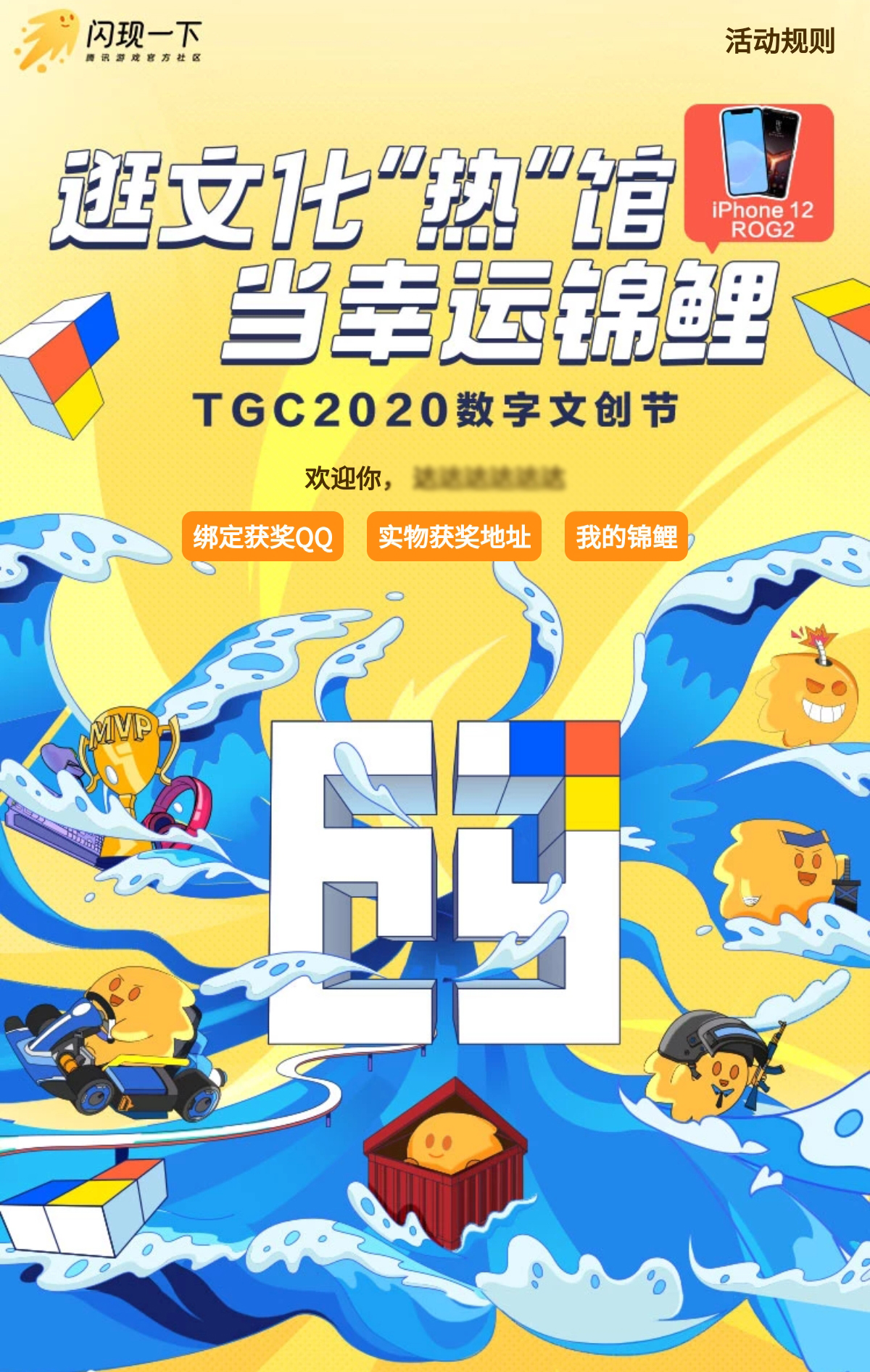 小主们,\"TGC腾讯数字文创节\"海南站要来啦!11月19日-24日,海口市万绿园,我们不见不散哟。作为活动承办方,腾讯游戏官方社区《闪现一下》自然要给各位小主谋福利啦!——“逛文化‘热’馆,当幸运锦鲤”福利活动11月19日至11月25日强势来袭!活动期间,各位小主前往TGC各大场馆打卡,即可获得锦鲤资格和闪现积分;使用锦鲤资格,小主有机会抱走iPhone 12、ROG2手机、Apple Watch Series 5、Apple iPad Air等重磅奖励,参与100%中奖,千万不要错过啦!
