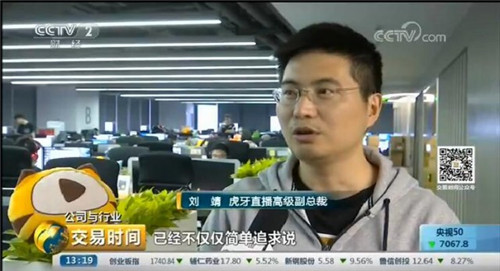 3月23日央视财经频道播出的《交易时间》栏目中,虎牙直播高级副总裁刘靖作为直播平台的代表接受采访,畅谈在游戏产业高速发展的时代下直播平台的重要性。