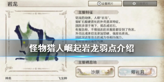 岩龙是一个非常难缠的怪物,怪物猎人崛起岩龙弱点是什么?坚硬的盔甲使得格外容易弹刀,这里小编给大家带来了怪物猎人崛起岩龙弱点介绍,一起来看下吧!