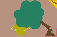 100种蠢蠢的死法第17关比较奇怪,如下图,小怪兽离大树较远,我拖动小怪兽到树底下,游戏的玩法是用手指轻触大树根部,大树倒下把小怪兽,压死,小编以为,至少要个一个锯子,或者斧子。