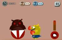 如下图,按住右边的按钮到达最高的点时松开,小绿怪就会用最大的力气打左边的不倒翁,然后小绿怪就会被压扁了。